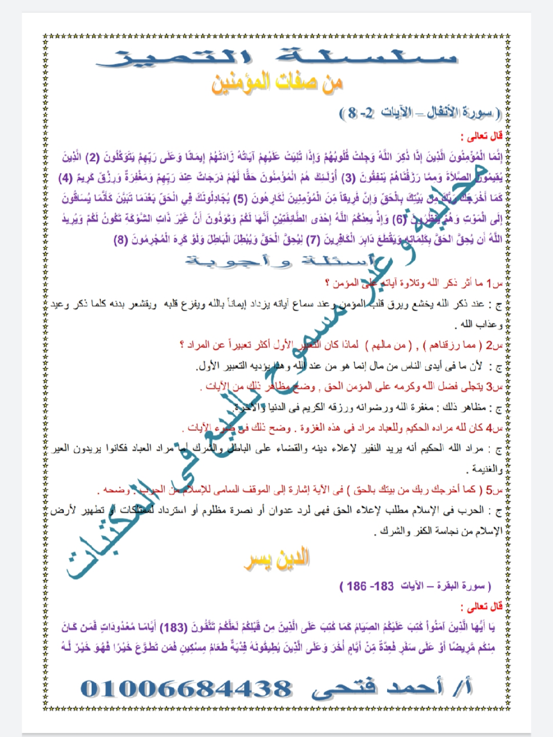 | مذكرة دين للصف الثاني الثانوي الترم الثاني |